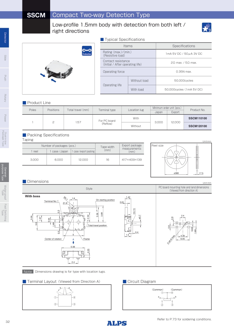 SSCM120100 照片 1 2 For PC board (Reflow) 0.35N max. 1.57 4.0×5.0×1.5mm