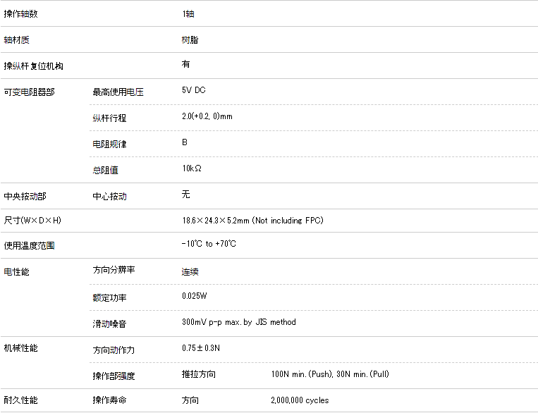 ALPS多功能操作裝置ThumbPointer™(薄型平面操縱桿控制器)RKJXU系列型號(hào):RKJXU1210006。