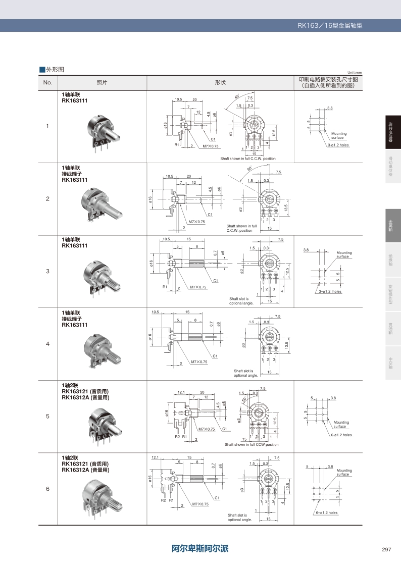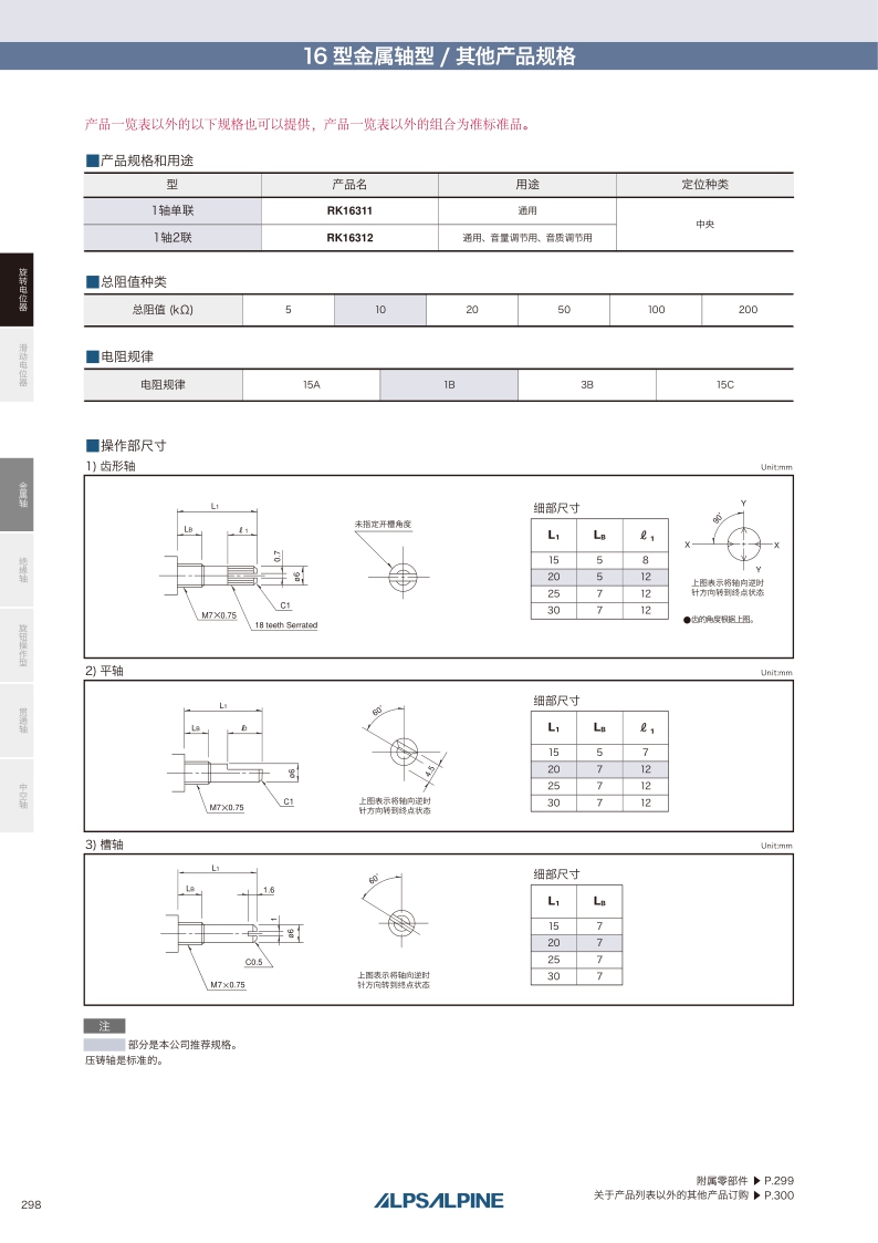 RK163系列——ALPS金屬軸電位器