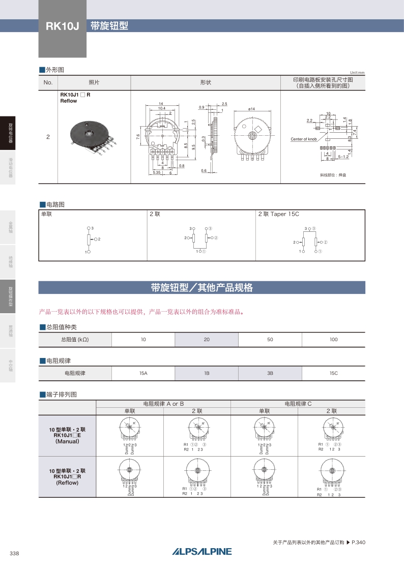 RK10J系列——ALPS旋轉(zhuǎn)電位器