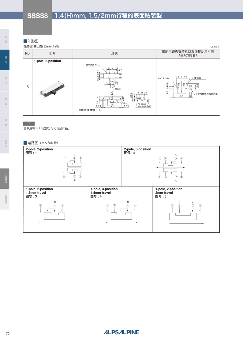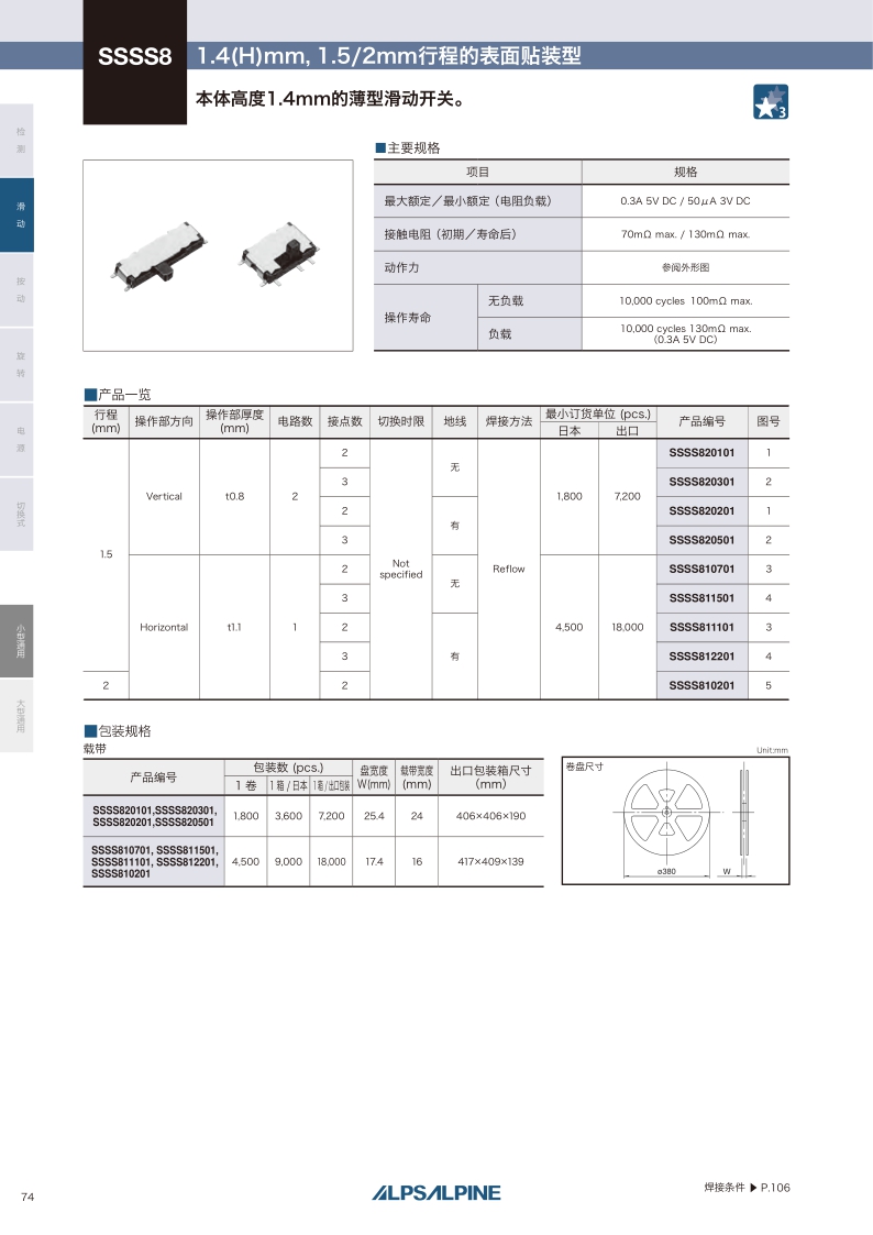 SSSS8系列——ALPS滑動(dòng)開關(guān)