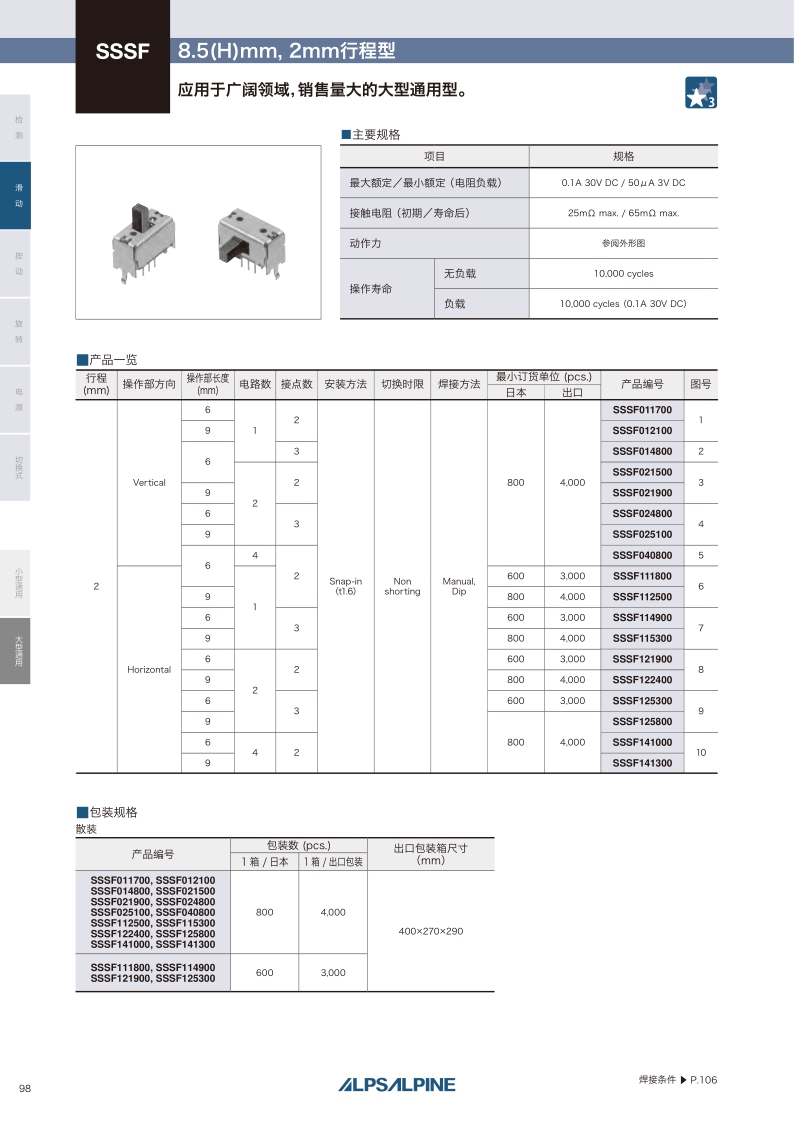 SSSF系列——ALPS滑動開關(guān)