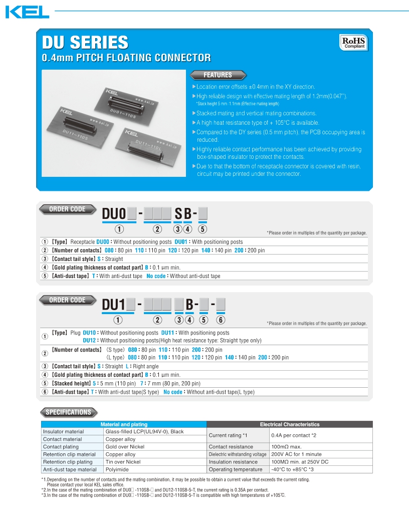 DU系列是業(yè)界最小的0.4mm間距底板對(duì)底板浮動(dòng)連接器,專為小型設(shè)備開發(fā)。業(yè)界最小級(jí)別的尺寸可以節(jié)省底板空間。